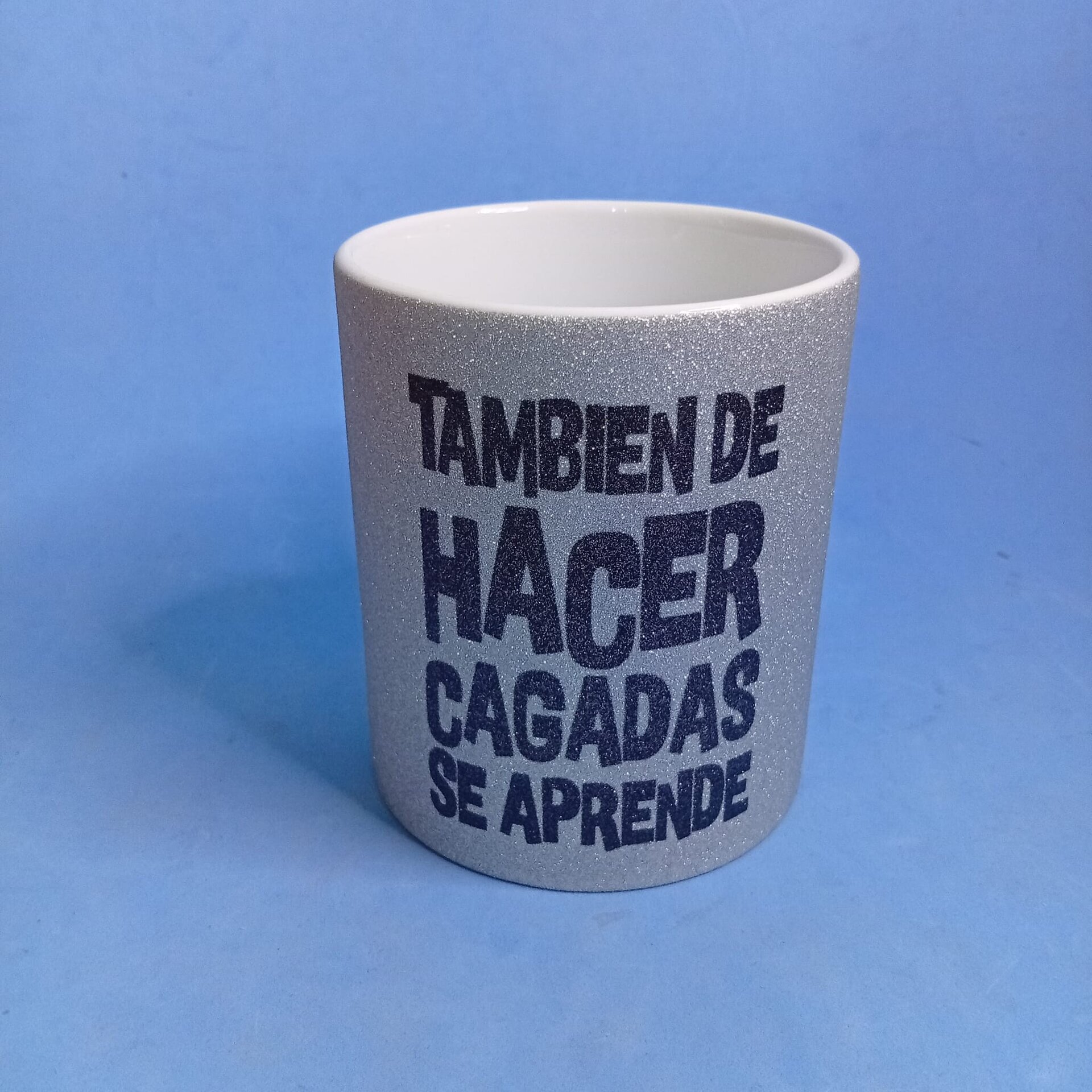 Taza āTambiĆ©n de hacer cagadas se aprendeā ā Purpurina Plateada